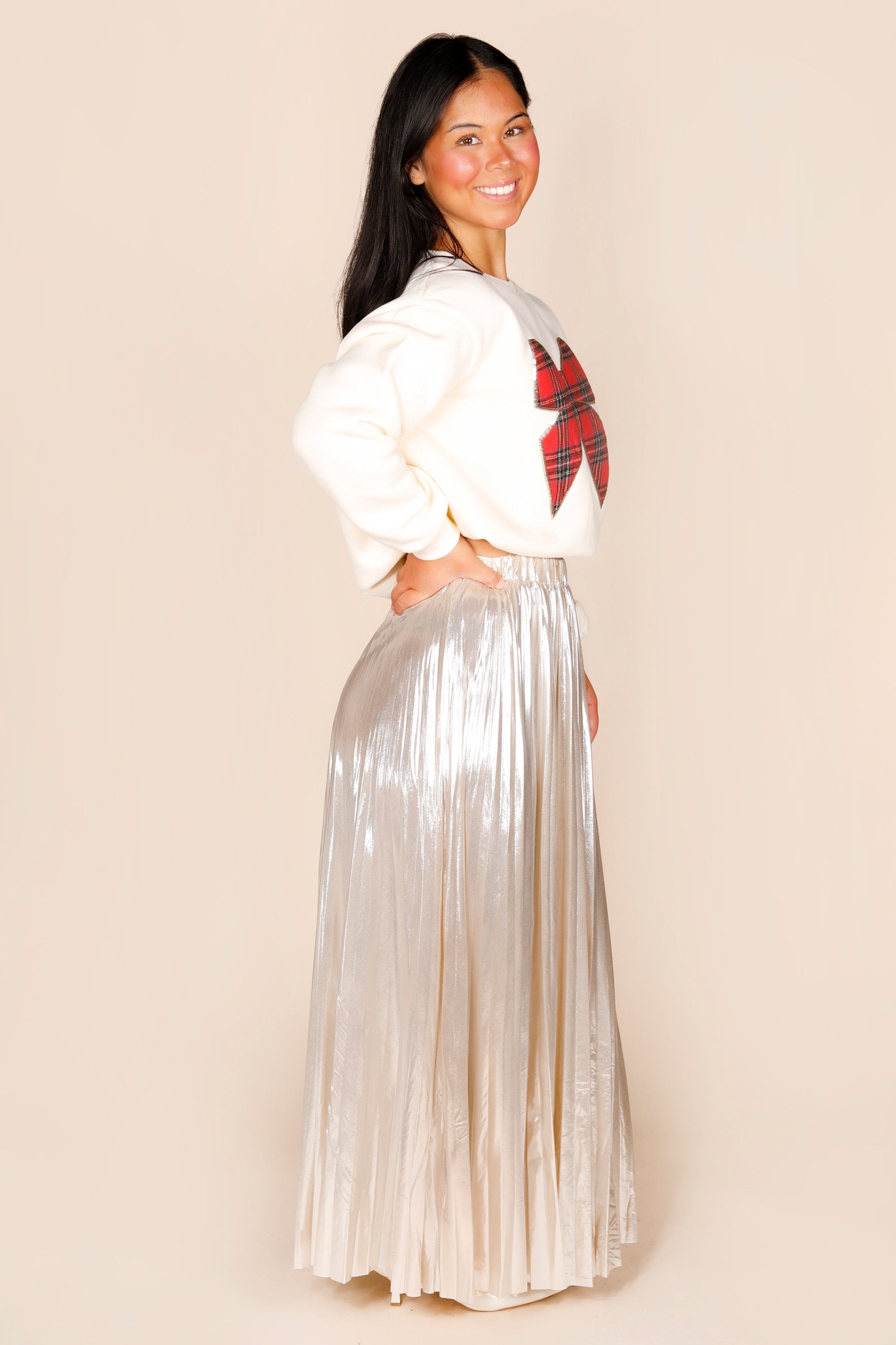 Shimmery Champagne Pleated Skirt - FINAL SALE