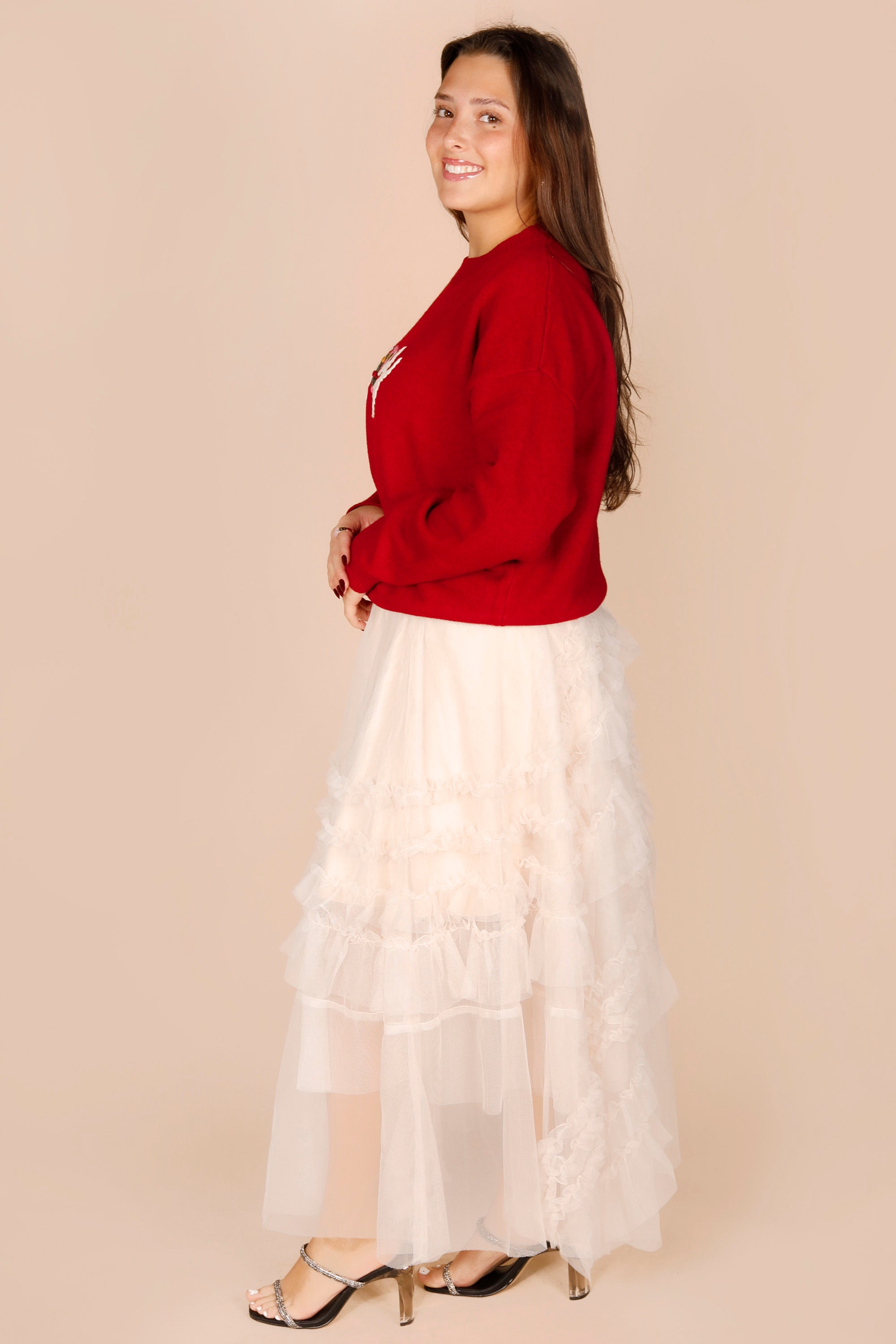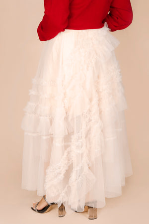 Cream Tulle Tiered Midi Skirt - FINAL SALE