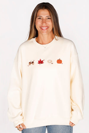-acorns, fall leaf, latte, and pumpkin embroidery