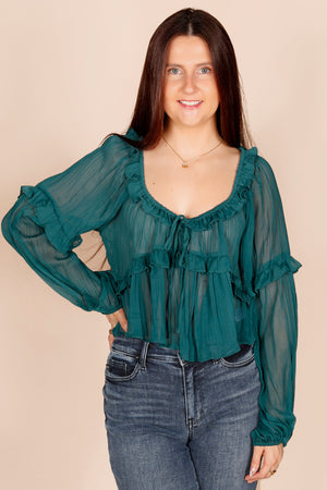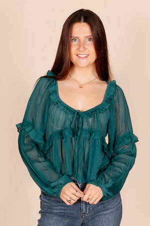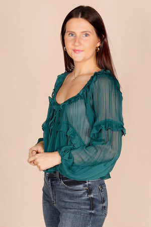 Deep Emerald Ruffle Top