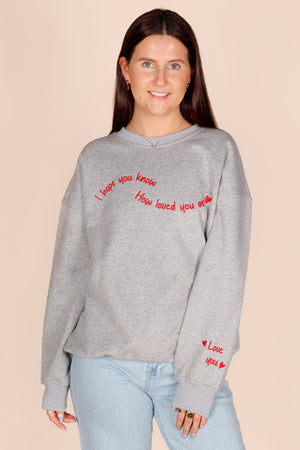 -"I hope you know how loved you are;" "love you" embroidery