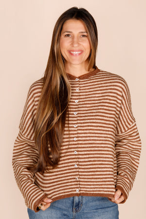 Piper Brown Mini Striped Cardigan - FINAL SALE